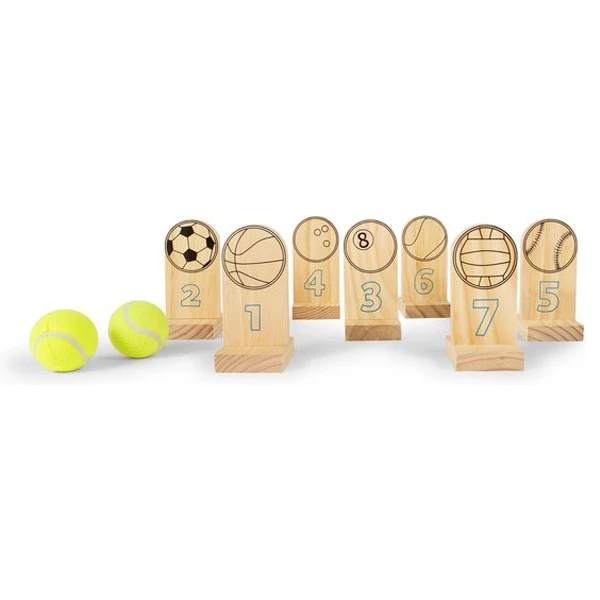 Het van oorsprong Franse bal werpen heeft nu een nieuw jasje. Wie werpt met de bal in zo min mogelijk beurten alle plankjes om of wie bereikt als eerst de afgesproken scorelimiet? Het spel is gemaakt van hout en bevat 7 targets en twee ballen.