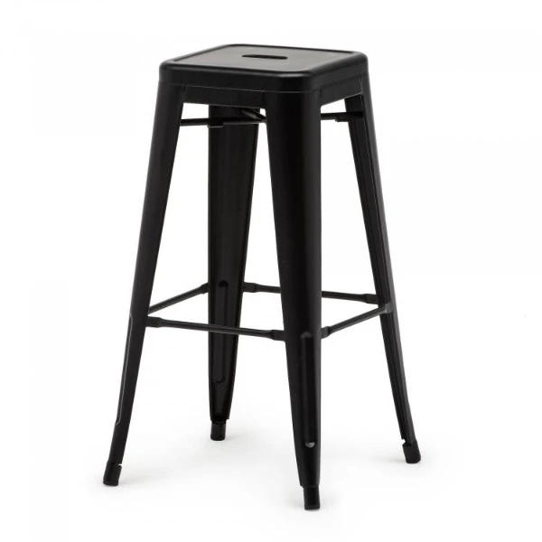 Mooie zwarte industriële barkrukken voor bij de statafels of aan de bar. Deze barkrukken zorgen voor een echte industriële sfeer waarin de mensen met elkaar kunnen kletsen en toch de mogelijkheid hebben om even de benen te laten rusten. Deze barkrukken hebben de juiste hoogte zodat je even hoog zit als de staande gasten.