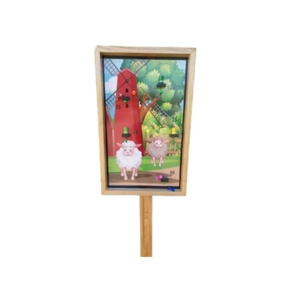Richt met de kruisboog en pijltjes en probeer de tonnetjes om te schieten om zoveel mogelijk punten te behalen, maar pas op dat je de schapen niet raakt