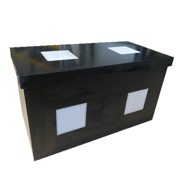 Deze buffettafel LED-Design heeft ingebouwde LED-verlichting. De kleur wordt automatisch gevarieerd of kan worden geregeld met de bijgeleverde afstandsbediening. Deze buffettafel LED bestaat uit een ombouw met een los blad en is demontabel en inklapbaar.