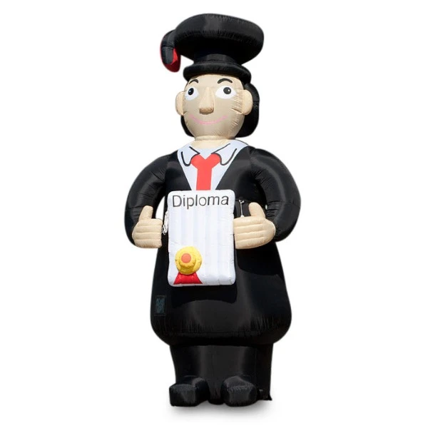 Heeft uw zoon/ dochter, vriend, buurtgenoot, studiegenoot, collega of teammaat zijn diploma gehaald? Dan moet dat natuurlijk uitgebreid gevierd worden. Met deze diloma man schiet u rechtstreeks in de roos bij een ieder die duidelijk zijn best heeft gedaan om zijn diploma te halen. Vol trots houdt deze in sjiek zwart pak gestoken megagrote kerel zijn ‘papiertje’ vast. Uiteraard heeft hij zijn academic cap (oftewel zijn examenhoed) na het behalen van zijn examen ook op. Geschikt voor examens op vele niveaus, ook voor afstudeerders op hbo of universiteit.