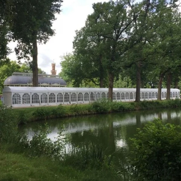 Alu-tenten, hallen en ook deze Walkway / luifeltenten kunnen alleen bij ons gehuurd worden in combinatie met op- en afbouw door ons team. Vanzelfsprekend wordt het transport dan ook door ons verzorgd en in rekening gebracht. Tranportkosten voor deze tenten worden altijd gerekend vanuit de locatie Apeldoorn.