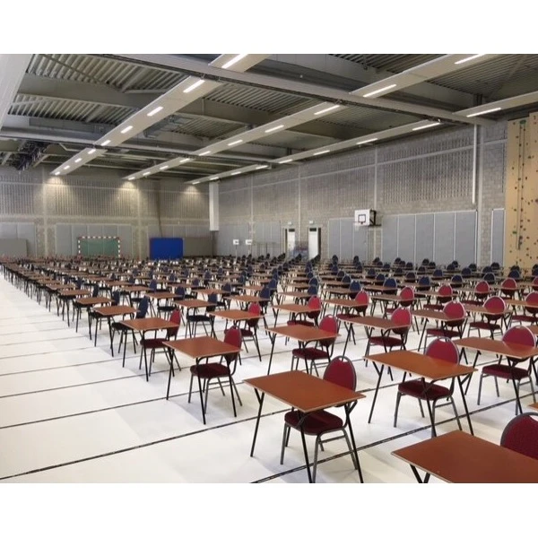 Tijdens de examenperiode heb je als onderwijsinstelling al genoeg aan je hoofd. Dankzij het makkelijke klapsysteem van onze tafels heb je in een mum van tijd al gauw een gymzaal of hal ‘examenklaar’ gemaakt. De tafels zijn tevens relatief licht in gewicht en zo gemakkelijk te vervoeren.