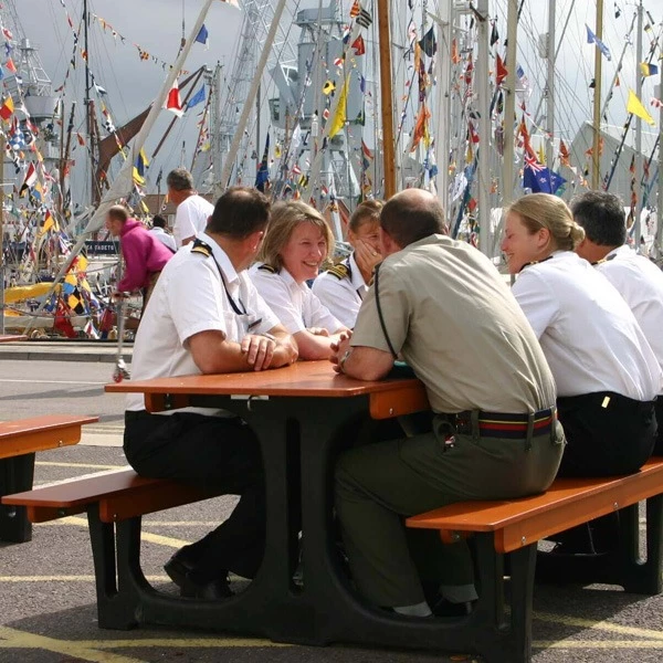 Bijna op elk evenement kom je onze foldtables tegen! Dit is de evenementenpicknicktafel waar bankjes aan vastzitten. Ideaal! Hier kunnen 8 personen comfortabel aan zitten.