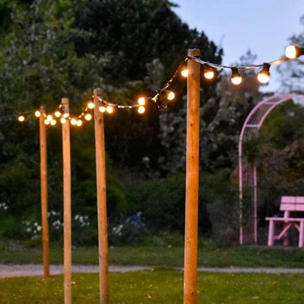 Wat is een feest zonder partylights? Hangende lampjes horen erbij. De prikkabels kunnen binnen in bijvoorbeeld tenten gehangen worden of buiten aan bijvoorbeeld 4 meter hoge houten palen. De palen kunnen voor een stukje in de grond gezet worden maar u kunt hier ook onze ballastblokken met vlaggenmastgat voor huren.