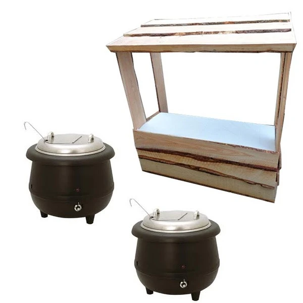 Met deze optie reserveert u één sfeerkraam met twee hotpots voor het schenken van bijvoorbeeld chocolademelk, (erwten) soep, glühwein e.d.