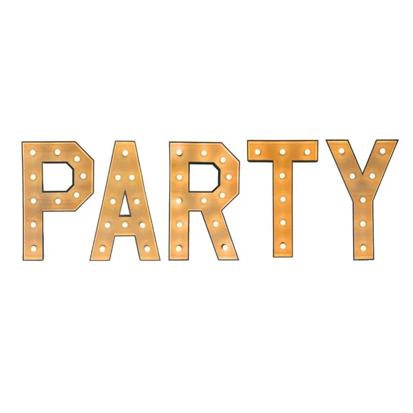 De PARTY Light Letters. Deze lichtletters zijn de ultieme sfeermakers op jullie bruiloft! Geweldig als binnenkomer op jullie feest of mooi in het veld als achtergrond tijdens ceremonie, dinner of party. Simpel aan elkaar te koppelen en maar 1 stopcontact nodig.