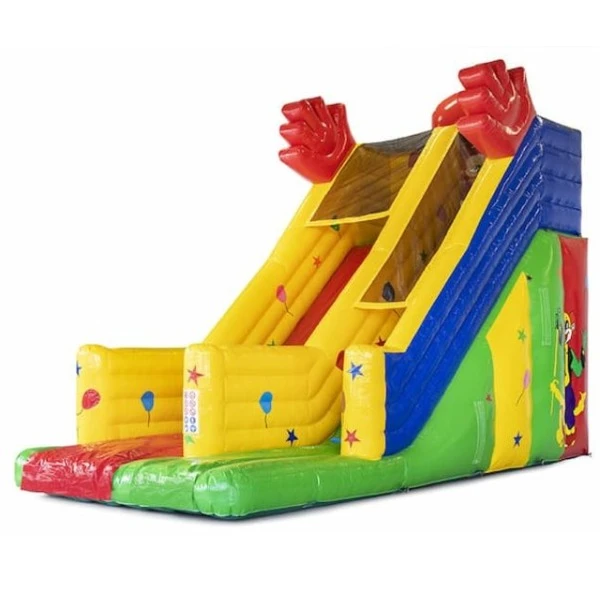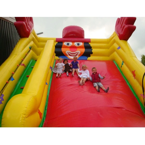 Wat een waanzinnige glijbaan! Met de opblaasbare super glijbaan met Clown thema zorg je voor urenlang speelplezier. Klimmen en glijden... en dat telkens weer opnieuw. Door het unieke klimsysteem kunnen de kids veilig naar boven klimmen. Hier moet je geen hoogtevrees voor hebben... Huren dus!
