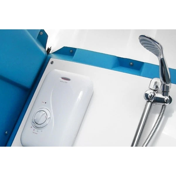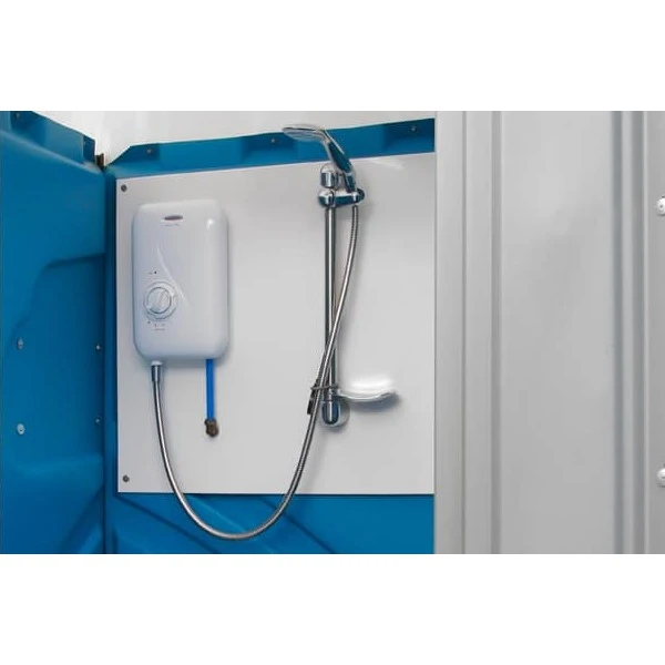 De mobiele douchecabine is een compacte en verplaatsbare doucheruimte die dienst doet als vervanging voor een douche of badkamer die wegens een verbouwing niet bruikbaar is. De douchecabine is voorzien een warmwater boiler van 30 liter. Het enige waarin u dient te voorzien is een aansluiting op het waterleiding net, afvoer en elektra.