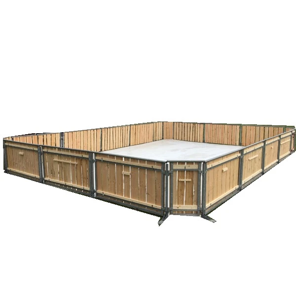 De ijsbaan wordt geleverd incl. nostalgische omheining van Larixhout, 48 paar schaatsen in diverse maten in kasten, schaatsslijpmachine, mat voor entree, schaatshulp voor kleine kinderen en inclusief op- en afbouw.