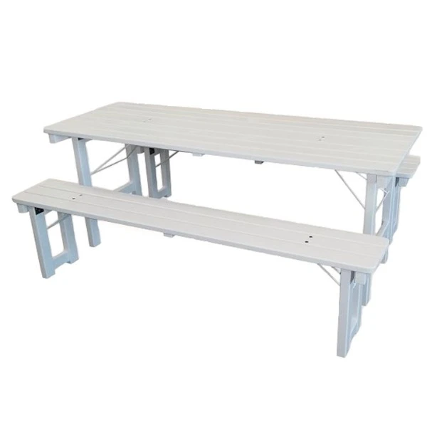 Een veelzijdig inzetbare picknickset met net een wat luxere uitstraling dan een standaard bierset. De set wordt veelal gebruikt op bruiloften of een ander feest waar net even wat meer luxe van af mag stralen.. Bij het selecteren van deze keuze ontvangt u een witte tafel én twee witte bankjes.