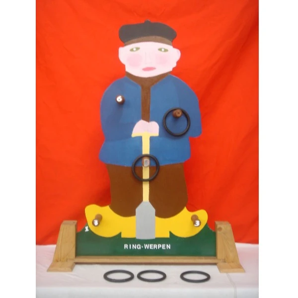 Probeer vanaf één of twee meter afstand (kijkend naar de leeftijd van het kind) de ringen om de stokken te werpen. Tel de punten bij elkaar op.