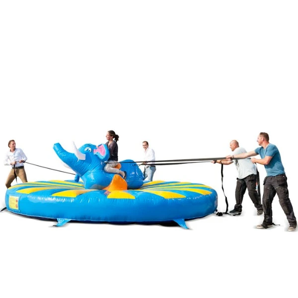 Een leuke variant op de mechanische rodeostier is deze opblaasbare trekrodeo. Daag jouw klanten uit met de coole Trekrodeo Stier. Met deze leuke opblaasbare attractie kunnen kinderen en volwassenen zelf aan de slag. Laat één kind plaatsnemen op het opblaasbare 3D-figuur en door middel van de vier touwen aan de zijkanten wordt de attractie in beweging gebracht door de andere deelnemers. Het is nog een grote uitdaging om te blijven zitten! Voor iedere deelnemer is dit een hilarisch spel. Er zijn 3 verschillende types van deze Rodeostier. De modellen kunnen met voorkeur gereserveerd worden. Ivm. logistieke redenen kan niet altijd met zekerheid gezegd worden welk type geleverd zal worden.
