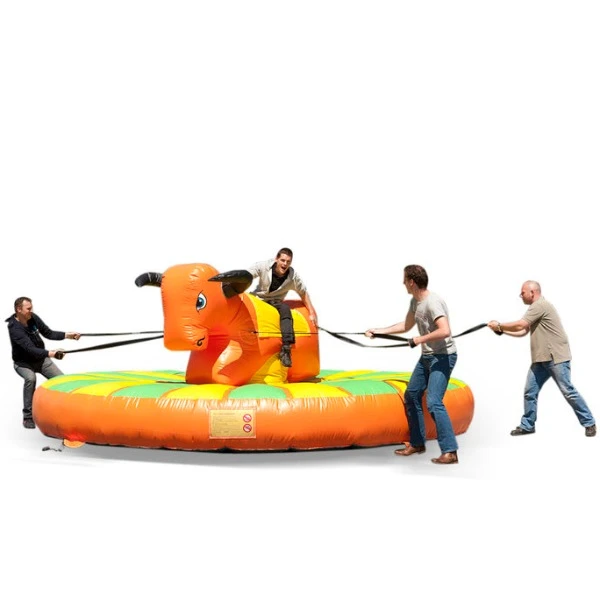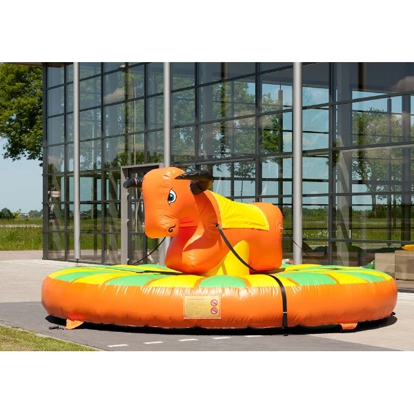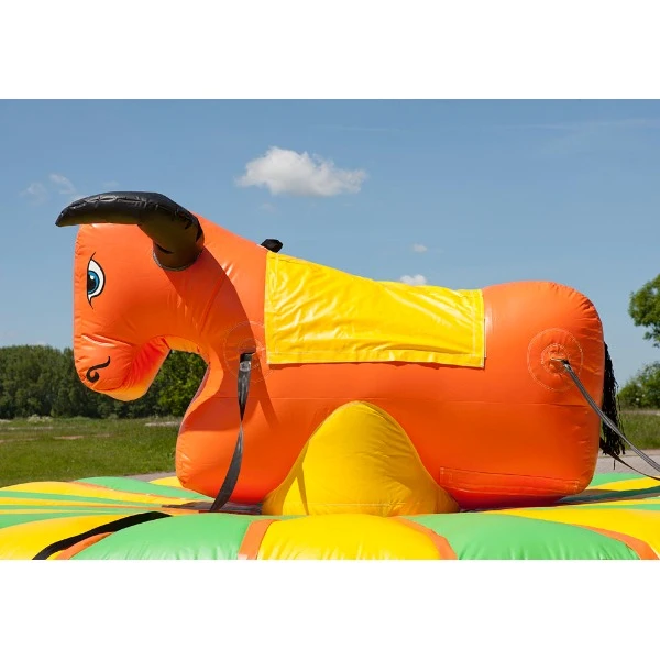 Een leuke variant op de mechanische rodeostier is deze opblaasbare trekrodeo. Daag jouw klanten uit met de coole Trekrodeo Stier. Met deze leuke opblaasbare attractie kunnen kinderen en volwassenen zelf aan de slag. Laat één kind plaatsnemen op het opblaasbare 3D-figuur en door middel van de vier touwen aan de zijkanten wordt de attractie in beweging gebracht door de andere deelnemers. Het is nog een grote uitdaging om te blijven zitten! Voor iedere deelnemer is dit een hilarisch spel. Er zijn 3 verschillende types van deze Rodeostier. De modellen kunnen met voorkeur gereserveerd worden. Ivm. logistieke redenen kan niet altijd met zekerheid gezegd worden welk type geleverd zal worden.