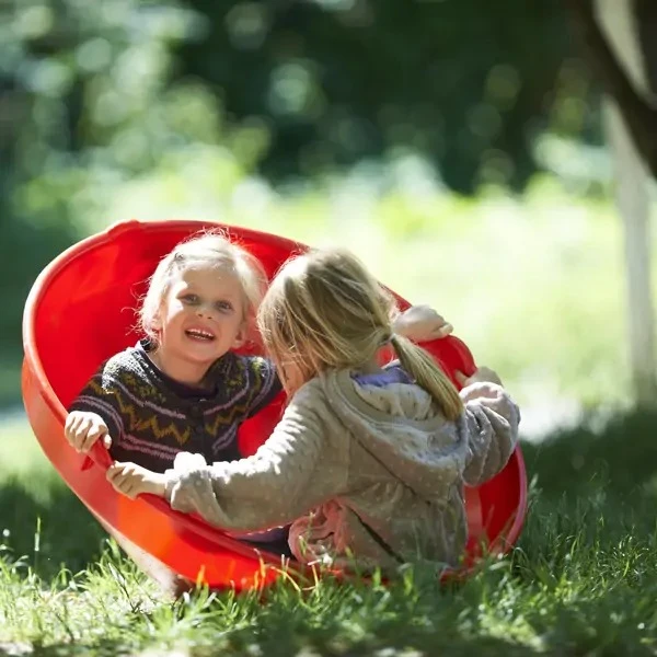 Maak kennis met deze grote wiebeltol. Met deze rode schommeltol / speeltol kunnen kinderen samen of alleen schommelen, wiebelen, draaien en nog veel meer! Leuk voor binnen en buiten.