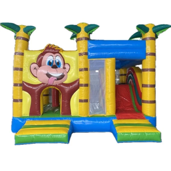 Beleef urenlang speelplezier op ons populairste springkussen uit het assortiment: De Multiplay. Het luchtkussen heeft veel speelmogelijkheden met leuke objecten, zoals pilaren op het springvlak en een coole glijbaan. Hierdoor haalt u met dit springkussen net iets meer in huis dan een 'standaard' springkussen. Met dit springkussen / spelkussen Multiplay Aap is uw kinderfeestje, braderie of schoolfeest helemaal compleet! We hebben verschillende uitvoeringen van het multiplay spelkussen maar deze aap in de jungle is net een maatje groter dan de anderen. Dat komt tot uiting in het springgedeelte binnen in het springkussen. Daar hebben de kinderen iets meer ruimte om hun kunsten te vertonen.