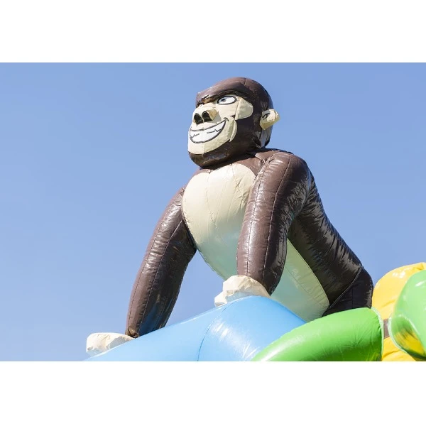 Wat een gaaf springkussen! Een echte blikvanger die grote blikvanger Gorilla bovenop het springkussen. Dit Gorilla springkussen zorgt voor urenlang plezier voor de kinderen en daarmee vanzelfsprekend ook voor de ouders! Zet dit springkussen Gorilla gemakkelijk binnen 10 minuten op. Bijvoorbeeld tijdens een kinderfeestje, buurtfeest, evenement of sportdag. Het springkussen biedt voldoende ruimte om met verschillende kinderen tegelijk te springen. Succes verzekerd met dit mooie Springkussen Gorilla.