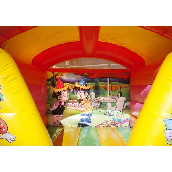 Met het opblaasbare springkussen met Party thema zorg je voor urenlang speelplezier. Het springkussen is zeer geschikt voor een feestje waar een jarige in het middelpunt staat. Maar ook voor alle andere feestjes is dit springkussen zeker een aanrader! Dit party springkussen past gemakkelijk in verschillende tuinen of opritten en is ook ideaal voor buurtfeestjes. Het springkussen party heeft vrolijke felle kleuren en op de wanden zijn leuke animaties afgebeeld die bij het thema passen.