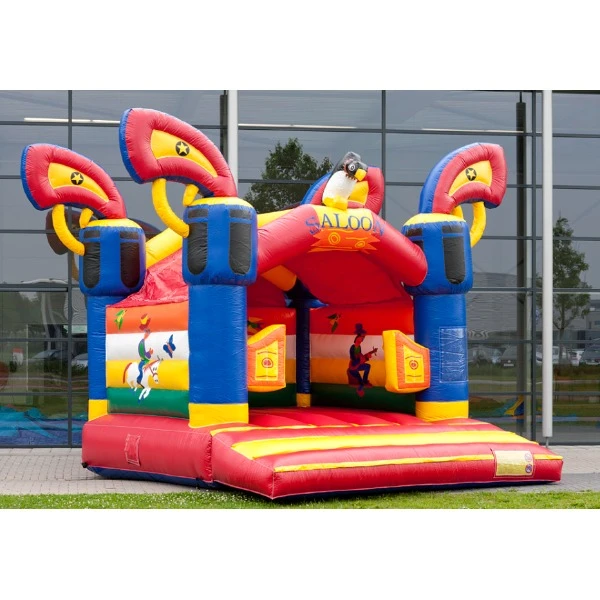 Waan je door het wilde westen tijdens het gebruik van dit Saloon cowboy springkussen. Wat een leuk thema springkussen is dit! Het springkussen is geschikt voor allerlei soorten evenementen en feestjes. Een feestje thuis of een feestje op de zaak, op de markt, bij de club, tijdens je sportdag, of noem maar op!