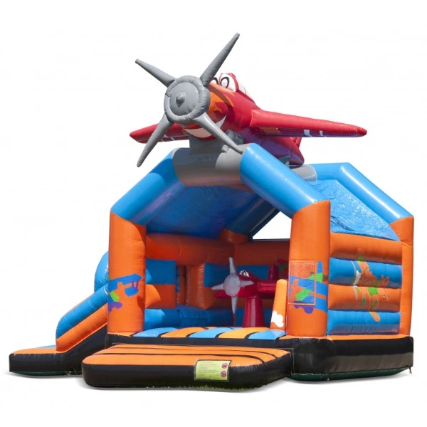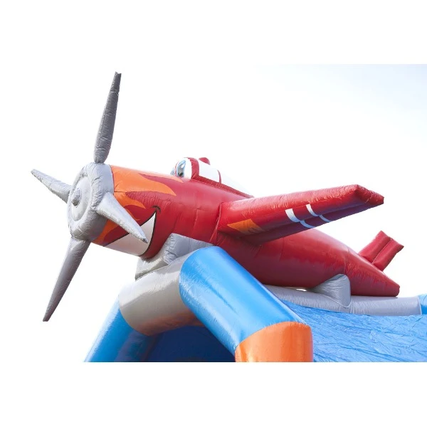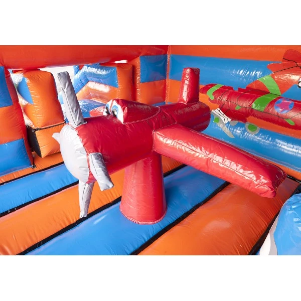 Bezorg kinderen een unieke beleving met dit multifun springkussen met Vliegtuig thema. Dit multifun springkussen vliegtuig heeft verschillende obstakels en een glijbaan. De kinderen kunnen langs of over de objecten klimmen en de pilaren zijn voorzien van prachtige kleurenprints. De Vliegtuig Multifun heeft ook nog eens een opvallend vliegtuig op het dak. Hoe gaaf is dát! Daarnaast kan er aan de zijkant van het springkussen gegleden worden voor extra veel speelplezier! Zowel jonge als oudere kinderen kunnen zich prima vermaken op dit vliegtuig springkussen. Voor iedereen een leuke belevenis. Huren dus!