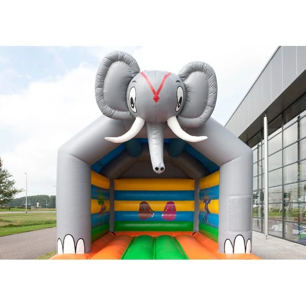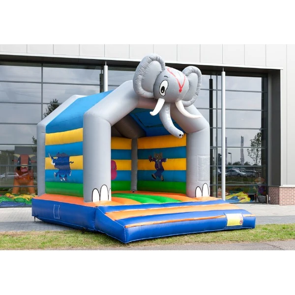 Een vrolijk springkussen met gave prints en bovenop het frame een super gave blikvanger, de Olifant. Het springkussen biedt voldoende ruimte om met verschillende kinderen tegelijk te springen. Succes verzekerd met dit mooie Olifanten springkussen. Het springkussen Olifant is breed inzetbaar. Voor feestjes thuis, buurtfeesten, bedrijfsfeesten, markten, en andere evenementen.