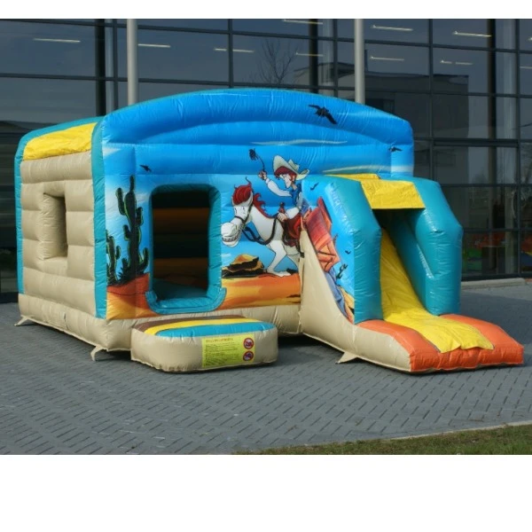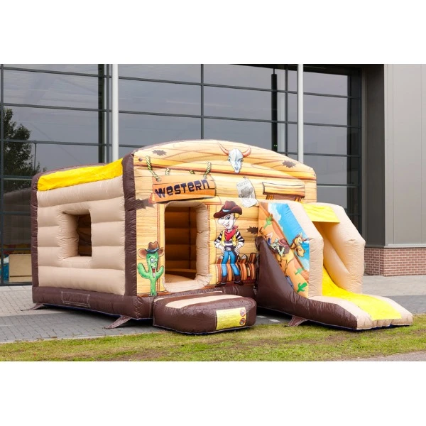 Een overdekt springkussen met gave prints in western thema, een glijbaan en genoeg ruimte om te springen: het kan allemaal met de Western Multifun. Kinderen kunnen hun geluk niet op met dit vrolijke springkussen. Het springkussen Western Multifun is eenvoudig op te zettten. Erg goed te gebruiken tijdens een buurtfeest, verjaardag of ander feestelijk evenement. Dit springkussen is er in verschillende versies/kleuren. Het is niet mogelijk om vooraf een model of kleur te kiezen.