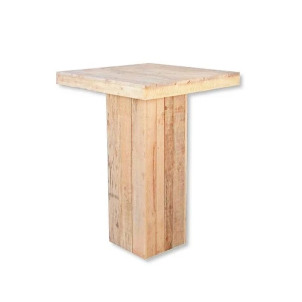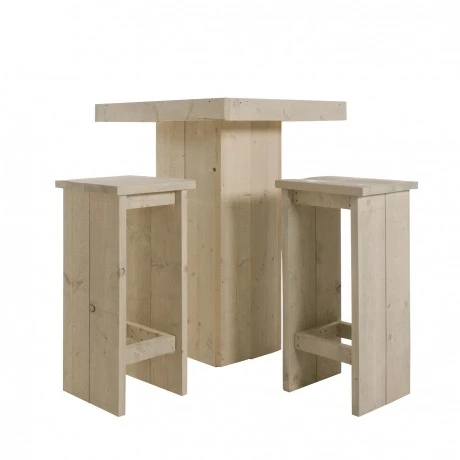 Statafel in de hippe steigerhout look. Deze tafel is 80 x 80 cm. Zie ook bijbehorende barkrukken, barombouw.