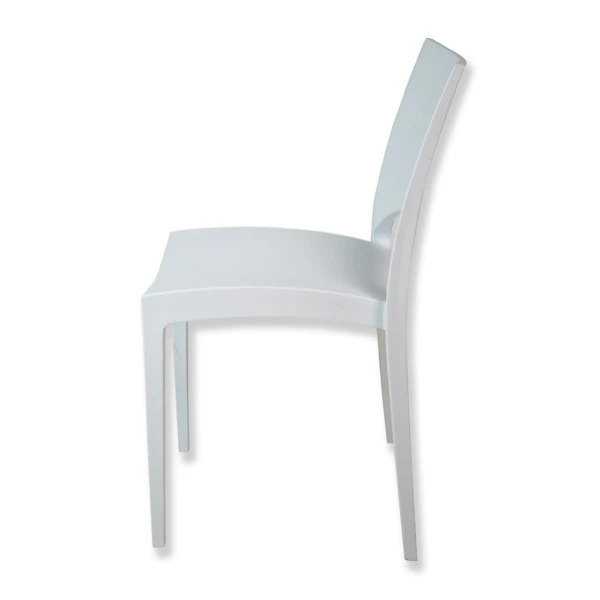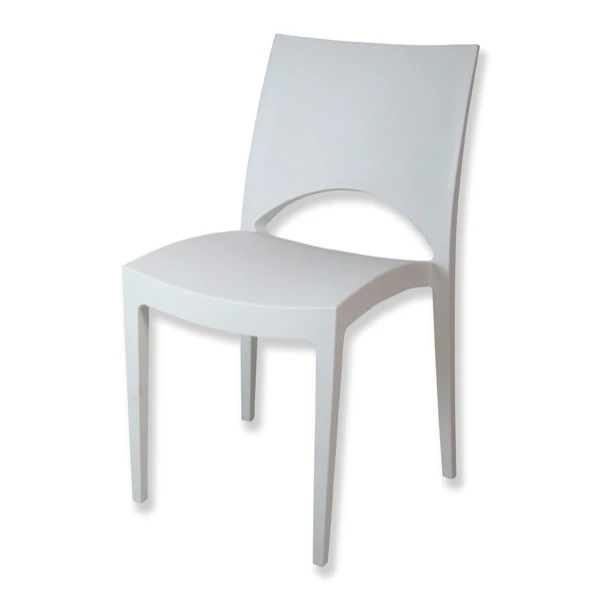Trendy witte stoel gemaakt van 100% polypropyleen. Zeer geschikt als terrasstoel, maar wordt ook veel gebruikt als nette stoel op evenementen, zoals bijvoorbeeld een bruiloft.