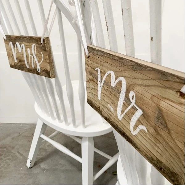 Deze houten stoelhangers zijn super leuk voor aan jullie stoel tijdens de ceremonie of het diner.