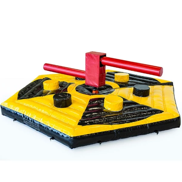 De wereldberoemde sweeper! De arm die rond draait en probeert jou van het blok van af te sweepen. Spring over de lage arm en duik onder de hoge arm door. Maar pas om want de arm kan in eens de andere kant op draaien. Wie het langst op het blok blijft staan wint!