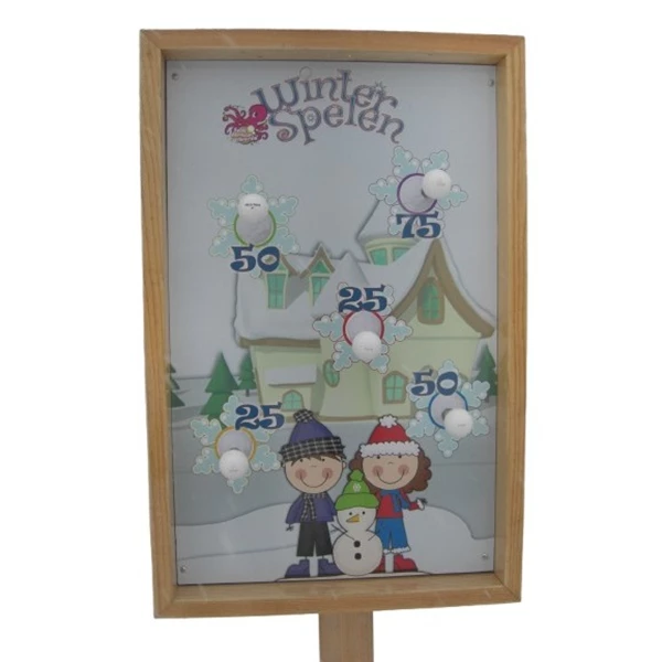 Behaal zoveel mogelijk punten in dit gezellige winterplaatje door ringen om de sneeuwballen te gooien.